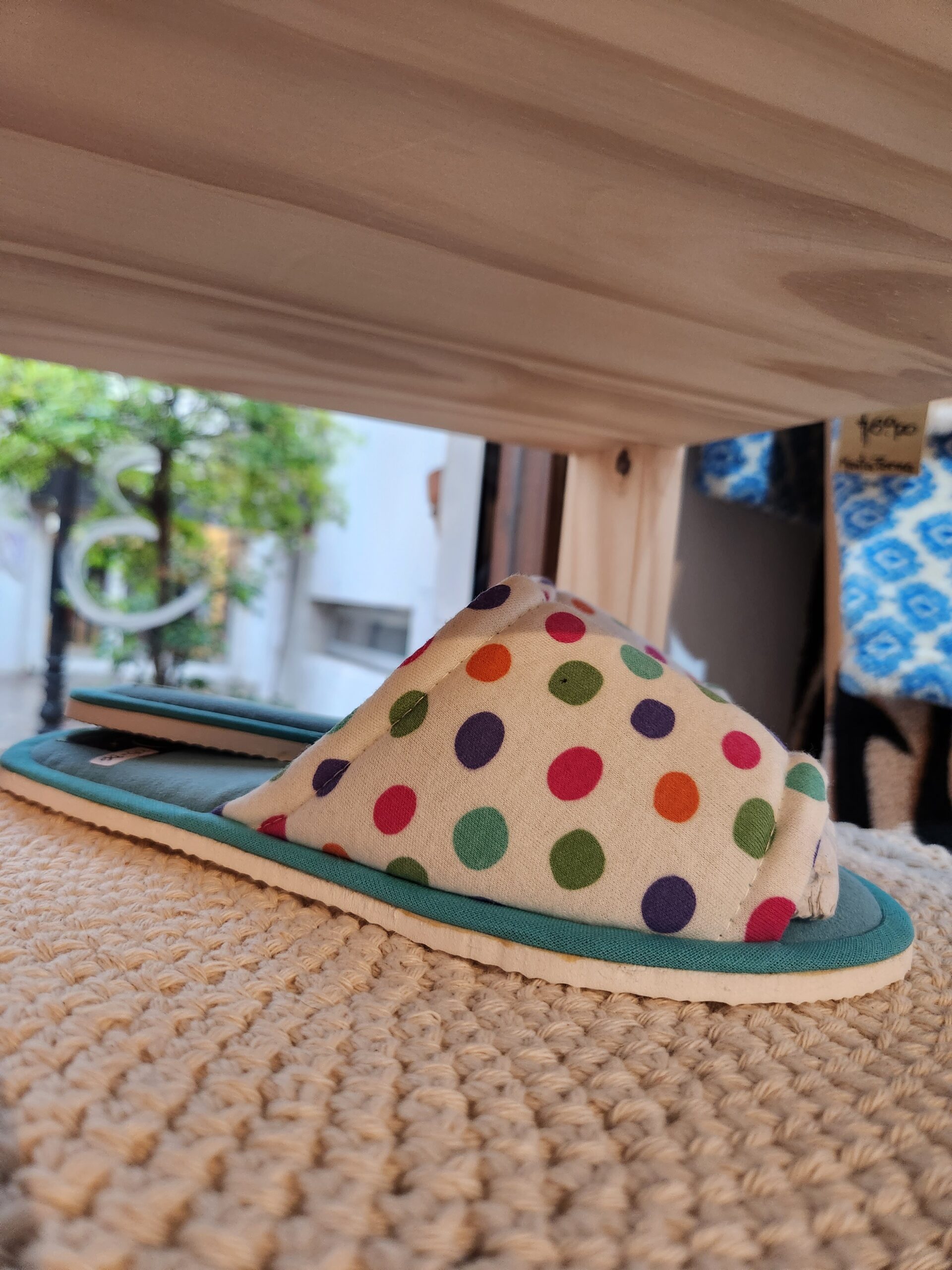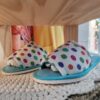 Pantuflas tu debilidad en casa . Plantilla y capellada interior de toalla de secado rápido, capellada exterior de algodón fantasía. Ideales para cuando salís de la ducha.