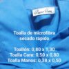 Medidas: Toallón 0,80 x 1,30 – Toalla cara 0,50 x 0,80 y Toalla manos 0,38 x 0,50.